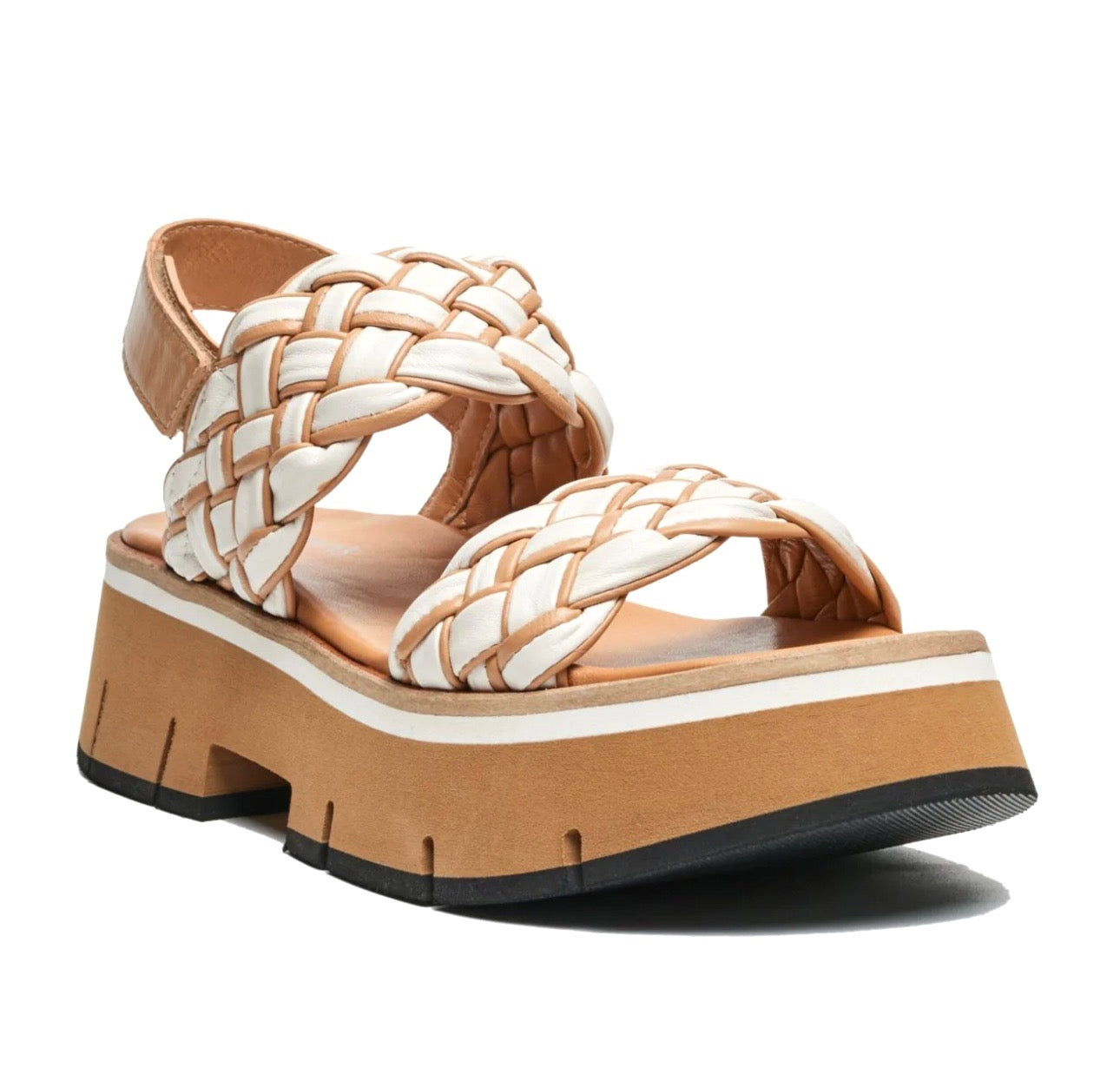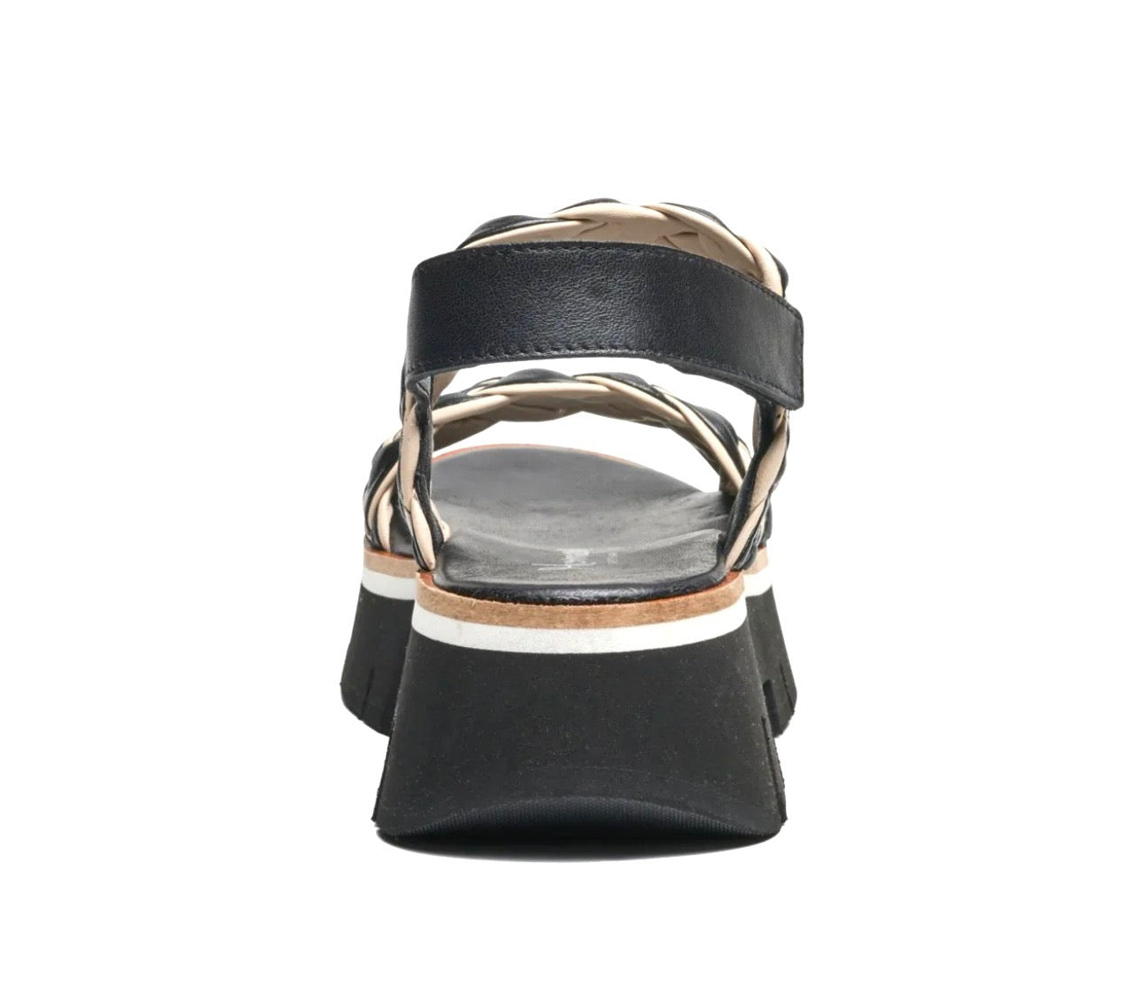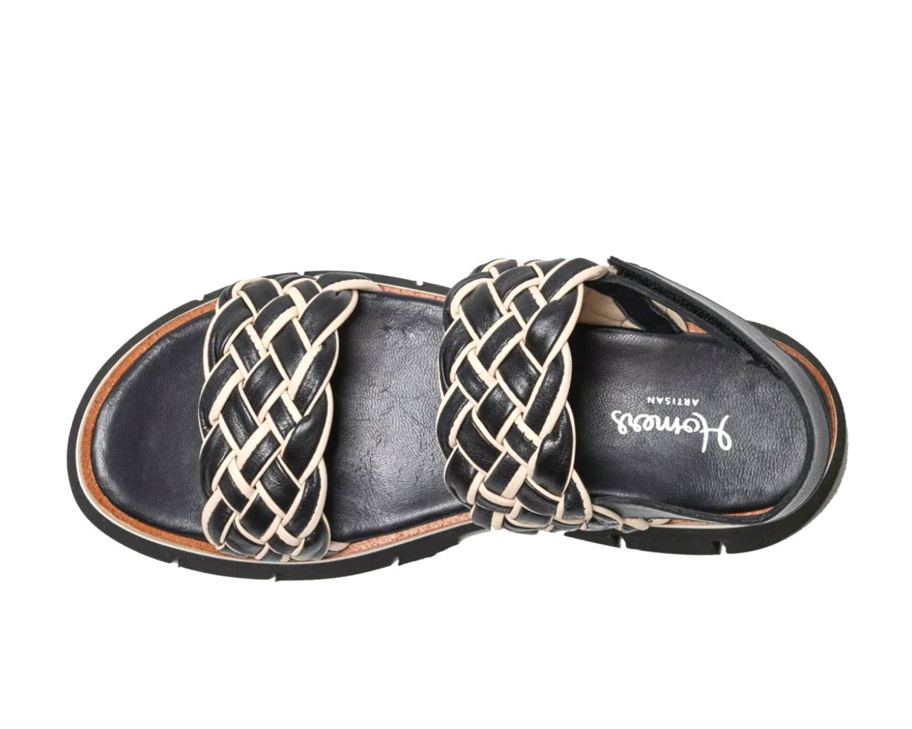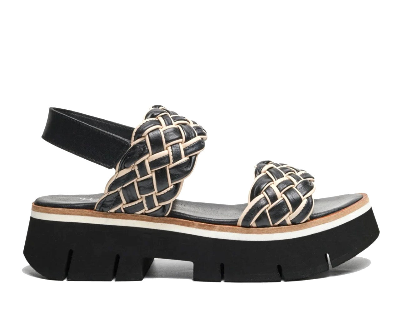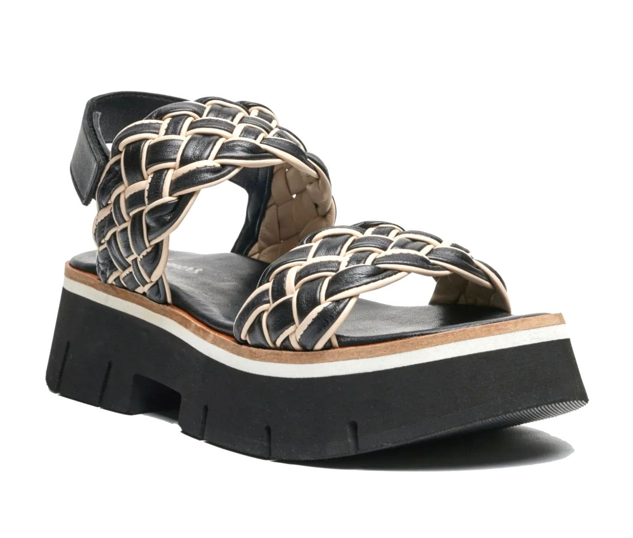 Supple leather double strap sandal with braided upper and Velcro closure. Soft lining and padded insole. A must for the woman who wants style and comfort!!!