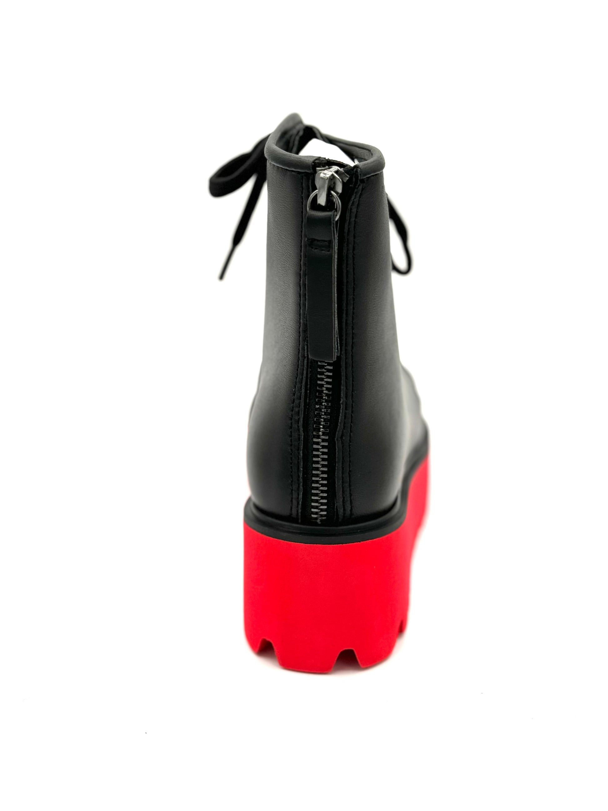 Leather lace up platform boot with red sole and rear zipper