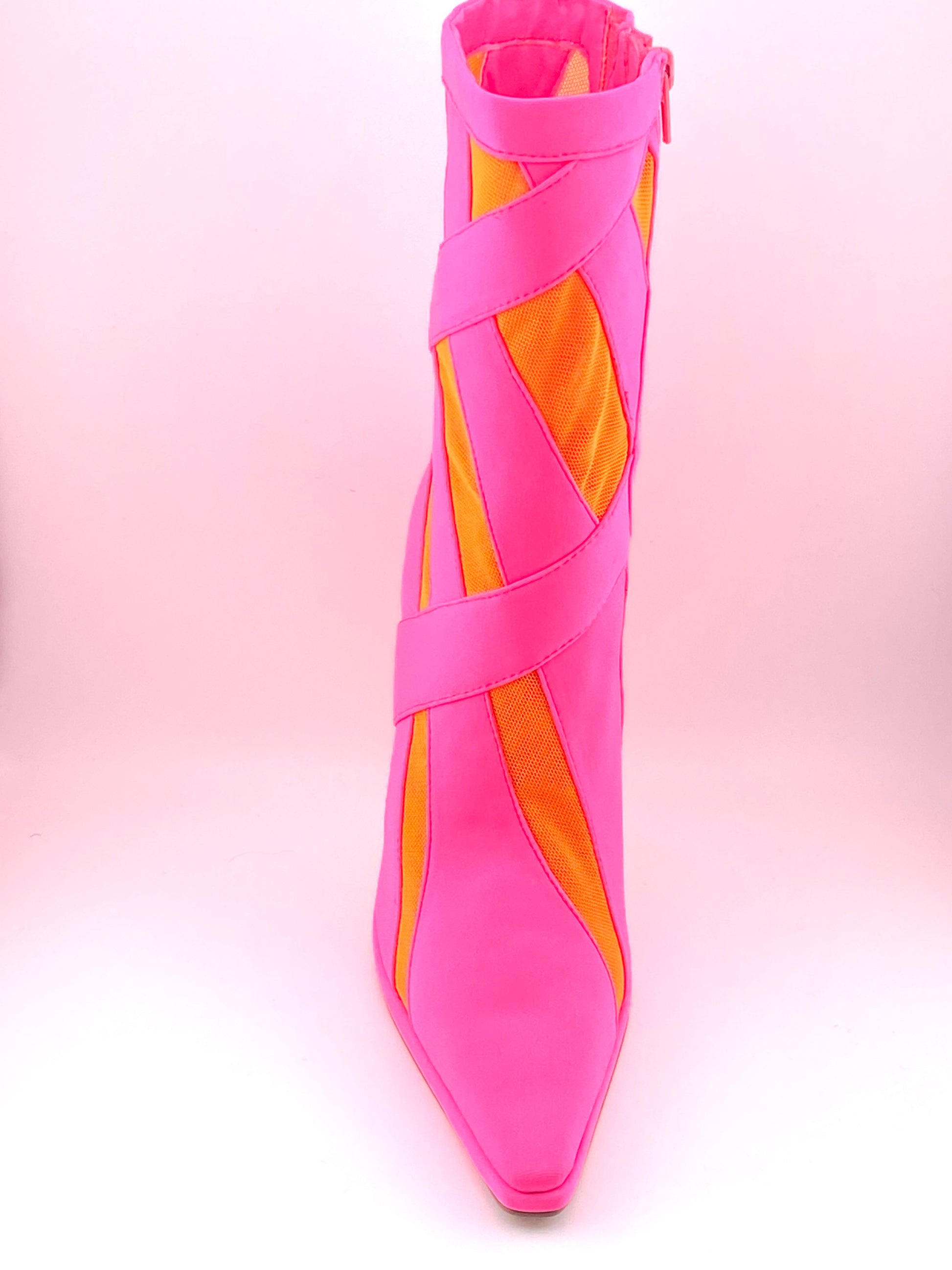 Fabric and mesh side zipper half boot. Looks fabulous!!!!