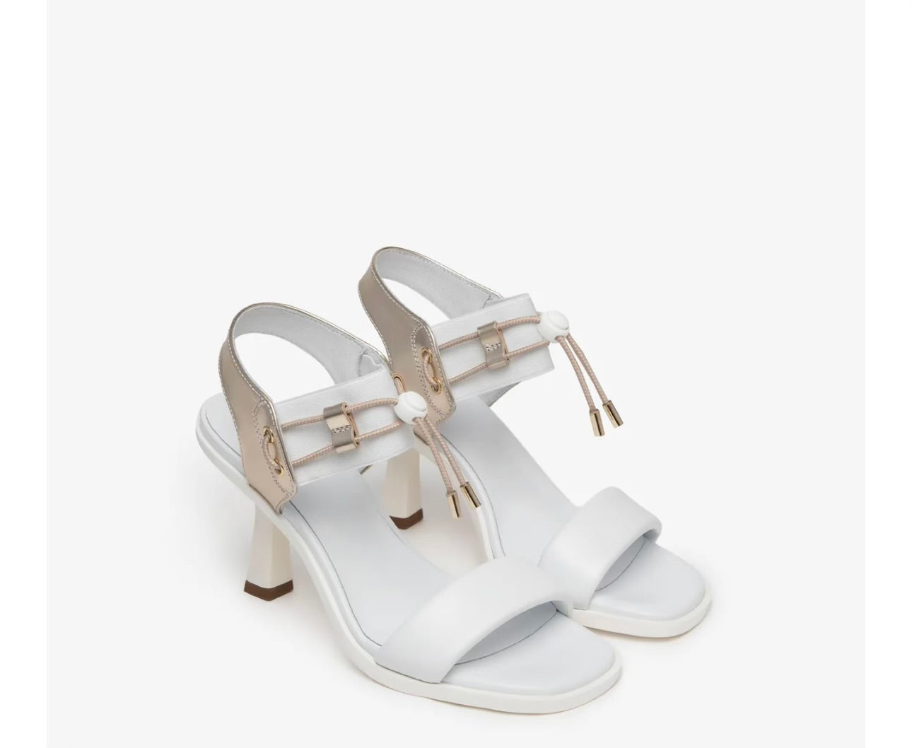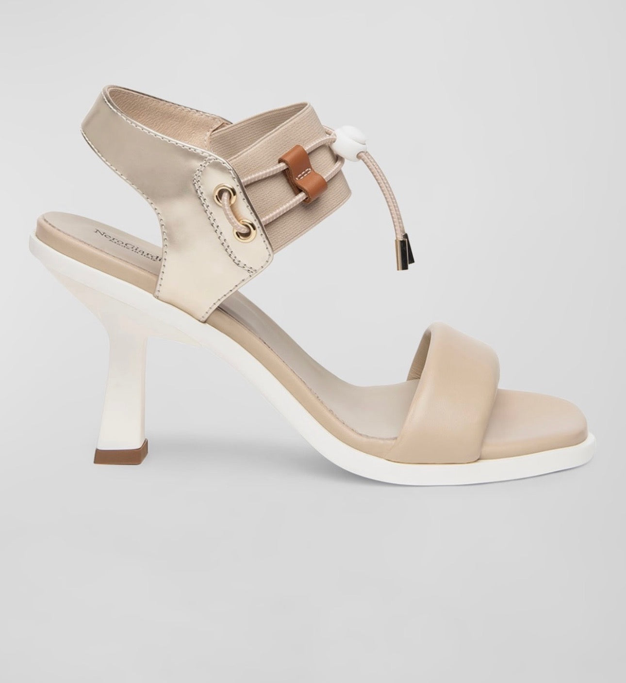 Stunning mid heel sandal with elastic band and drawstring. Made in Italy.