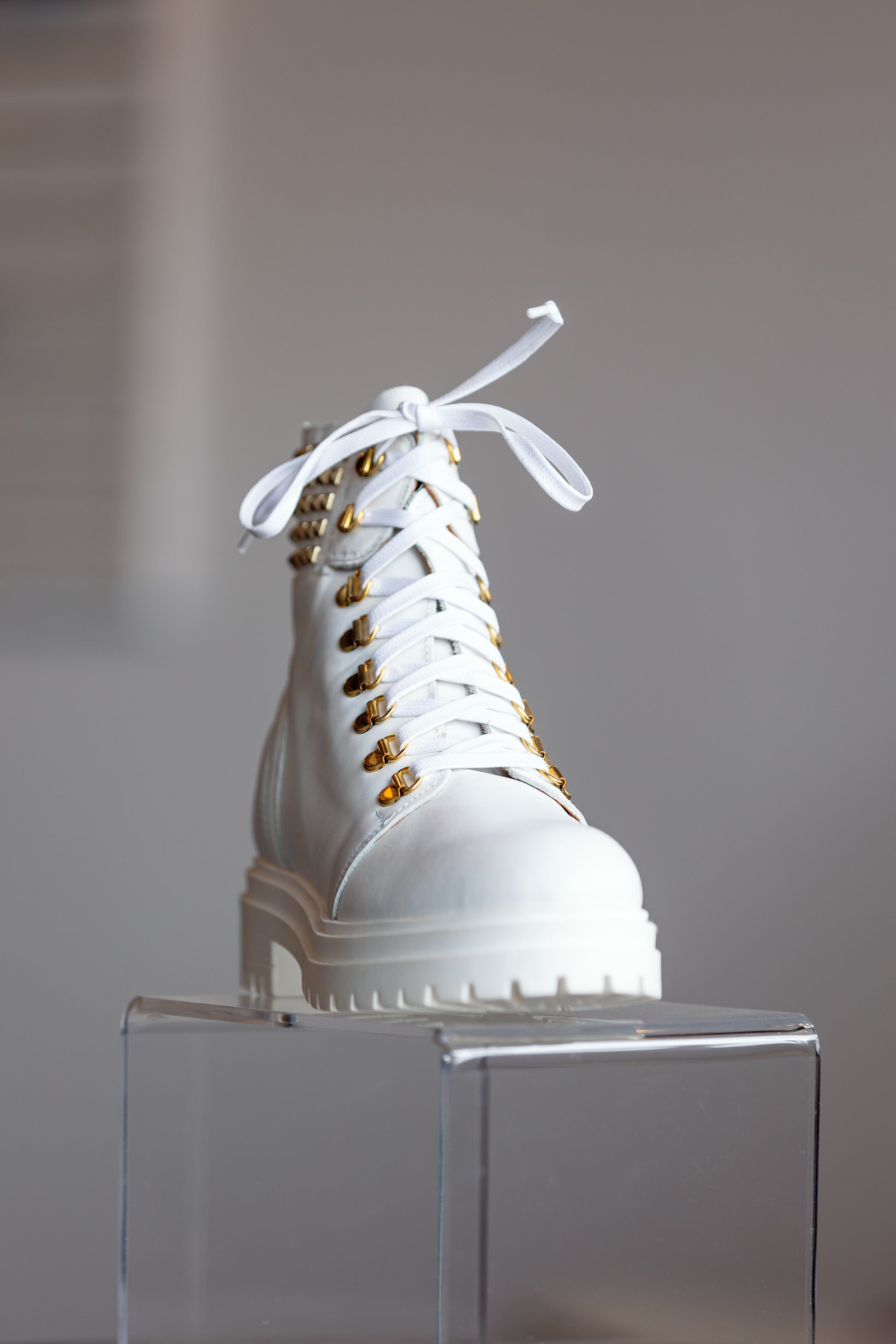 Leather lace up combat boot with gold studs. FINAL SALE!